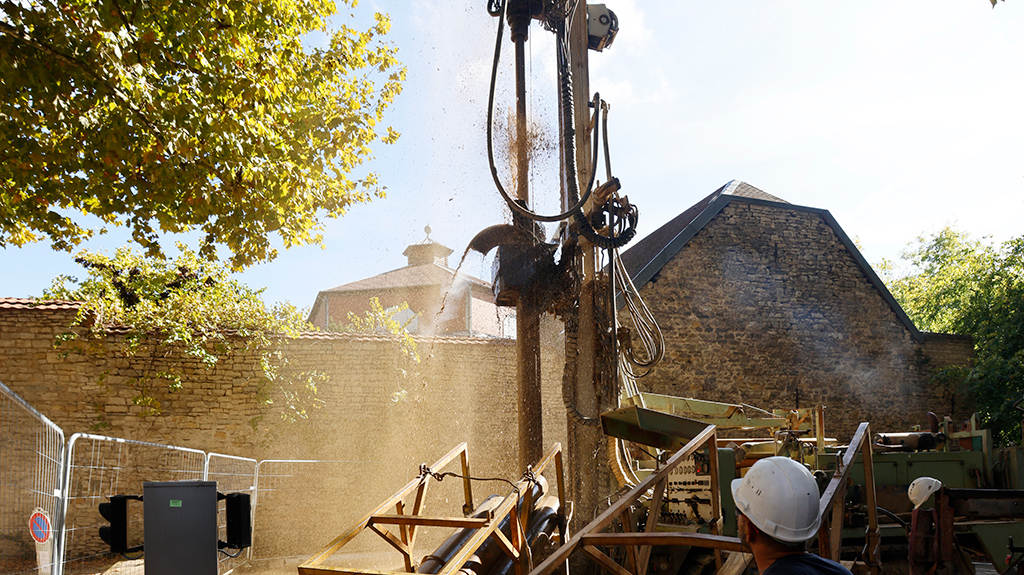 Un piézomètre (forage d’étude), installé en 2021 place Granvelle a depuis confirmé la présence de la nappe à un niveau suffisant pour envisager un pompage. L’installation d’un chantier de forage d’un puits géothermique a suivi en octobre dernier. « L’objectif est d’exploiter cette source d’énergie renouvelable pour couvrir une partie des besoins de chaleur du Musée du Temps, du Kursaal, du Théâtre Ledoux, voire d’autres bâtiments riverains et ainsi réduire leur consommation d’énergie », explique Damien Genève, chargé du projet à la Direction Maîtrise énergie.