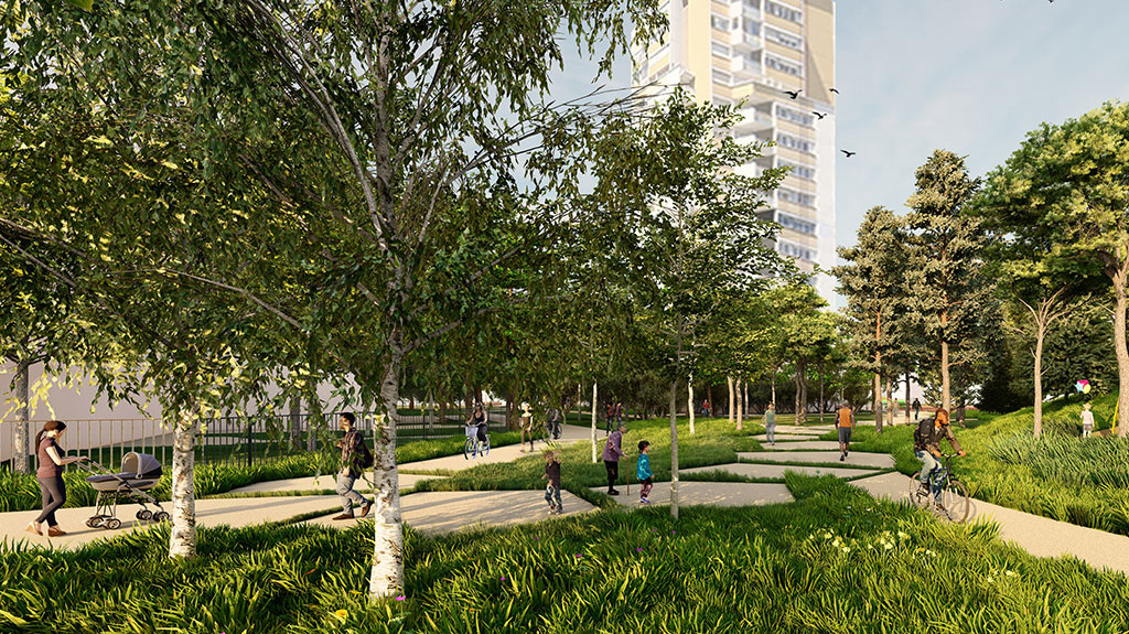 Véritable trait d’union entre deux grands lieux de vie, un chemin des parcs doit être créé afin de relier pour les piétons le cœur des Époisses au Parc urbain. Sur le trajet, un travail particulier sur les éclairages apportera du confort aux promeneurs sans nuire pour autant à la faune locale. C’est donc l’ensemble des espaces publics du secteur, notamment les abords des bâtiments existants, qui seront améliorés (copropriété Le Vauban, école, crèche…), le tout conçu après concertation avec les habitants et les usagers du secteur.