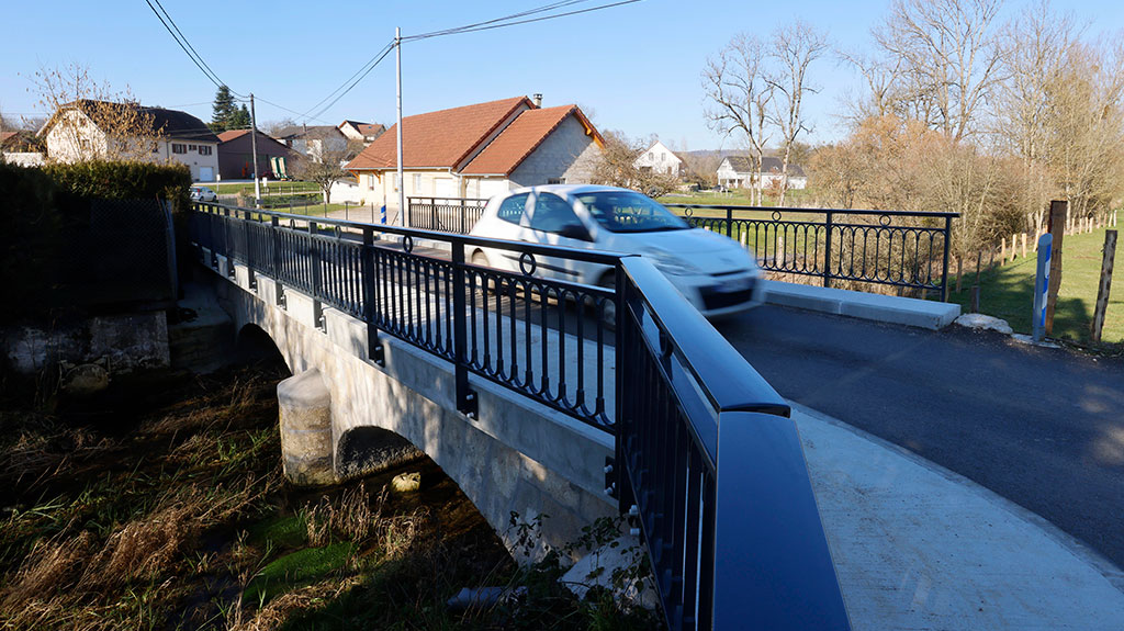 C’est ainsi que le pont de Nancray, de 14 mètres sur 5 mètres, bien dégradé, a fait l’objet, en 2022, d’une campagne de restauration indispensable. Au programme : réfection de l’étanchéité, pose de nouveaux garde-corps, reprise des maçonneries et confortement des voutes par projection de béton. Un chantier qui a permis de rendre plus confortable le passage des piétons, avec la création d’un vrai trottoir de 1 m 40.