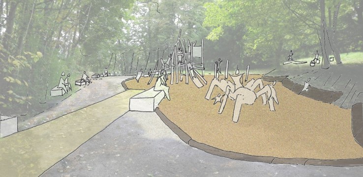 Bien située, dans un cadre agréable, fréquentée régulièrement, l’aire de jeux du parc Boichard n’en demeurait pas moins perçue comme dangereuse et peu accueillante, vétuste et exigüe. En juin, après des travaux débutés en avril, c’est une toute nouvelle aire de jeux qui verra le jour, réorganisée au sein d’une partie de l’espace ouvert situé au carrefour entre les différents cheminements. Elle sera réalisée en copeaux de bois, avec des jeux en bois, et diverses installations ludiques en bois seront dispersées autour, ainsi que des banquettes. Le lien avec la combe sera également renforcé, le cheminement recouvert là aussi de copeaux de bois issus des forêts bisontines.