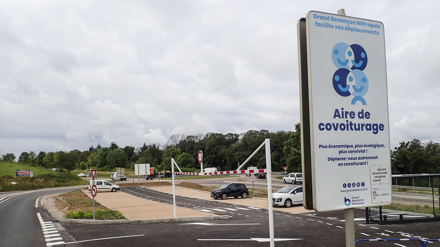 À Besançon, route de Franois, vers les Hauts-du-Chazal, une aire de covoiturage de 130 places est en cours d’aménagement sur le parking de l’Institut de formation des professions de santé (IFPS). À Saône, un parking de covoiturage sera mis en service à l’horizon 2024, lors de la réalisation du pôle d’échanges multimodal, de sorte que toutes les entrées de Besançon soient équipées de ce type de parking.