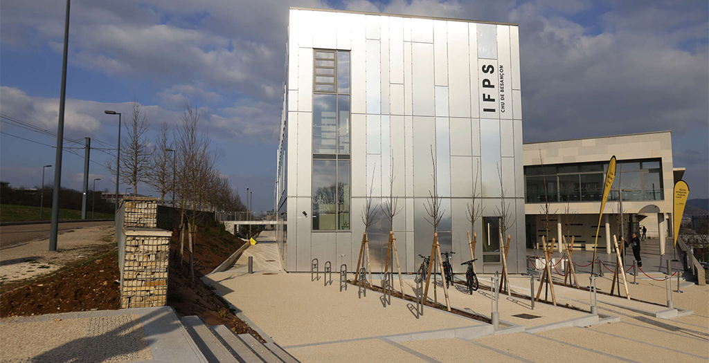 IFPS. Derrière ce sigle on retrouve l’Institut de Formation des Professionnels de Santé où seront désormais formés sur un même site (ce qui n’était pas le cas auparavant) de 7 000 m², plus de 1 000 étudiants en soins infirmiers, aides-soignants, ambulanciers, auxiliaires de puériculture, kinésithérapeutes, ergothérapeutes et autres métiers de la santé. D’un coût de 31 M€ financés par la Région Bourgogne Franche-Comté, ce nouveau site flambant-neuf a été construit sur TEMIS Santé conformément au souhait de Grand Besançon Métropole qui a mis à disposition le terrain à proximité immédiate de la fac de médecine, de la bibliothèque et du restaurant universitaire et du CHRU Jean Minjoz. Cette localisation favorise les échanges entre les formations théoriques et pratiques, et permet de renforcer les liens avec les établissements de santé.