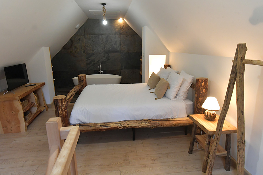 Là, l’hébergement se fait dans deux maisons particulières dont les intérieurs ont, comme à Boussières, été entièrement conçus et aménagés par le couple : Papeterie, 4 étoiles, hommage à l’industrie locale ; Pavie, spacieuse et pleine de l’histoire des guerres de François 1er, labellisée 5 étoiles par le CDT. Enfin, inédit, le tonneau « Coup de foudre », construit par Jérôme, offre un 3è gîte original et très cosy pour le séjour douillet de deux ou trois personnes.